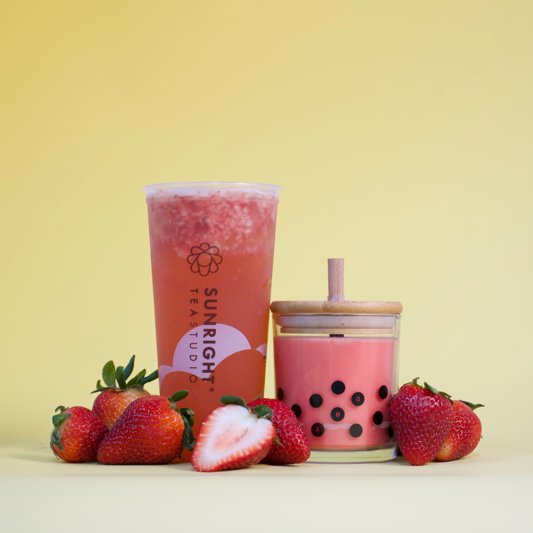 A carefully crafted candle made especially for one of Sunright's classics - the Strawberry Jasmine Tea! This drink is a customer favorite, and its clear why! It's made with only fresh strawberries blended into a harmonious balance of fragrant jasmine green tea. With Sunright's stamp of approval, we were honored to have the privilege of creating a candle for such a well-loved drink. This candles captures the sweet allure of fresh strawberries and jasmine tea, and lighting it will set a sunny, uplifting ambiance to your space.